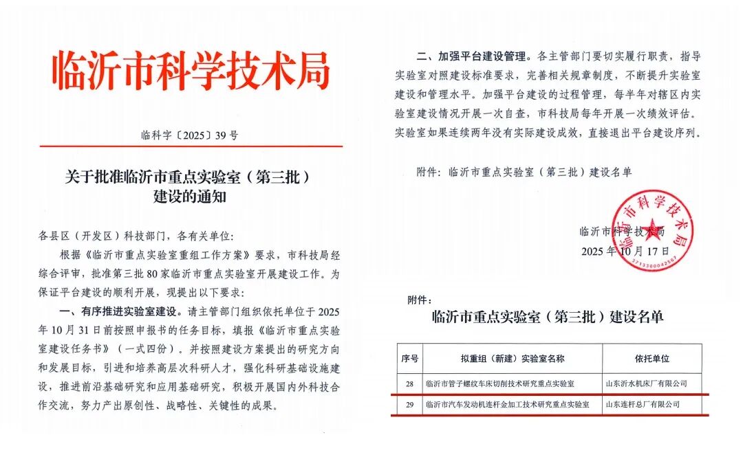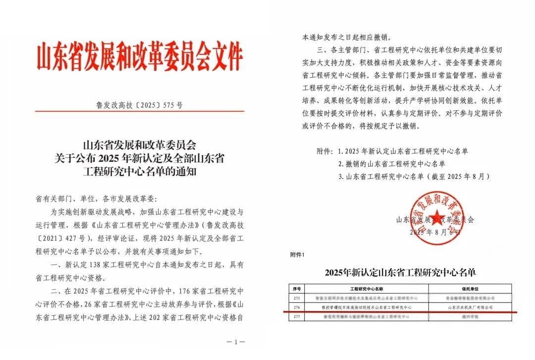 1.集团深耕机械制造领域,成功创新研发CHY61系列车铣中心、CKST系列双头车床、CK61H系列重型车床、CK84系列轧辊车床、双山导轨数控车床及数控专机等多款新产品。 2.深化产学研协同创新,与北京交通大学、北京科技大学、北京石油化工学院、天津大学、浙江海洋大学、兵科院宁波分院、山东大学、山东理工大学等高校院所进一步建立深度合作关系。 3.聚焦科技攻关跑出创新 “加速度”,成功斩获国家级 “小巨人” 企业评价、科技型中小企业、山东省科技进步奖、山东省齐鲁友谊奖、山东省工程研究中心评价、山东省专精特新企业(连杆)、山东省首台套技术装备、临沂市创新创业大赛奖项、临沂市五一劳动奖状、临沂市重点实验室等市级及以上荣誉15项。同时,凭借过硬的产品品质与优质的服务口碑,公司屡获合作客户的高度认可与赞誉,收获多家客户赠予的锦旗,彰显了市场与行业的双重肯定。