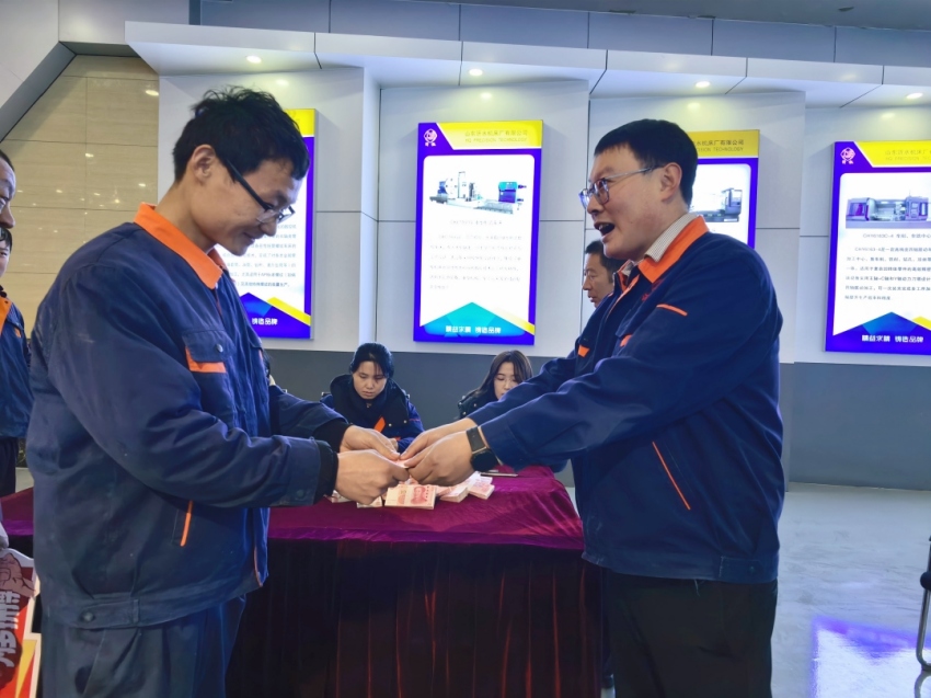 大会最激动人心的环节,当属奖金和福利的发放!尽显集团对员工的深切厚爱与关怀。现场为全体沂机员工逐一发放现金奖励和丰厚福利,一沓沓厚实的现金现场兑付,一件件用心的“十全十美”福利,分量十足、诚意满满,是集团对每位奋斗者的充分肯定,更是对实干精神的大力弘扬。大家手拿沉甸甸的福利和奖金,脸上洋溢着喜悦,现场掌声、欢呼声此起彼伏,这份厚重回馈,也成为新一年继续奋斗的最强底气!